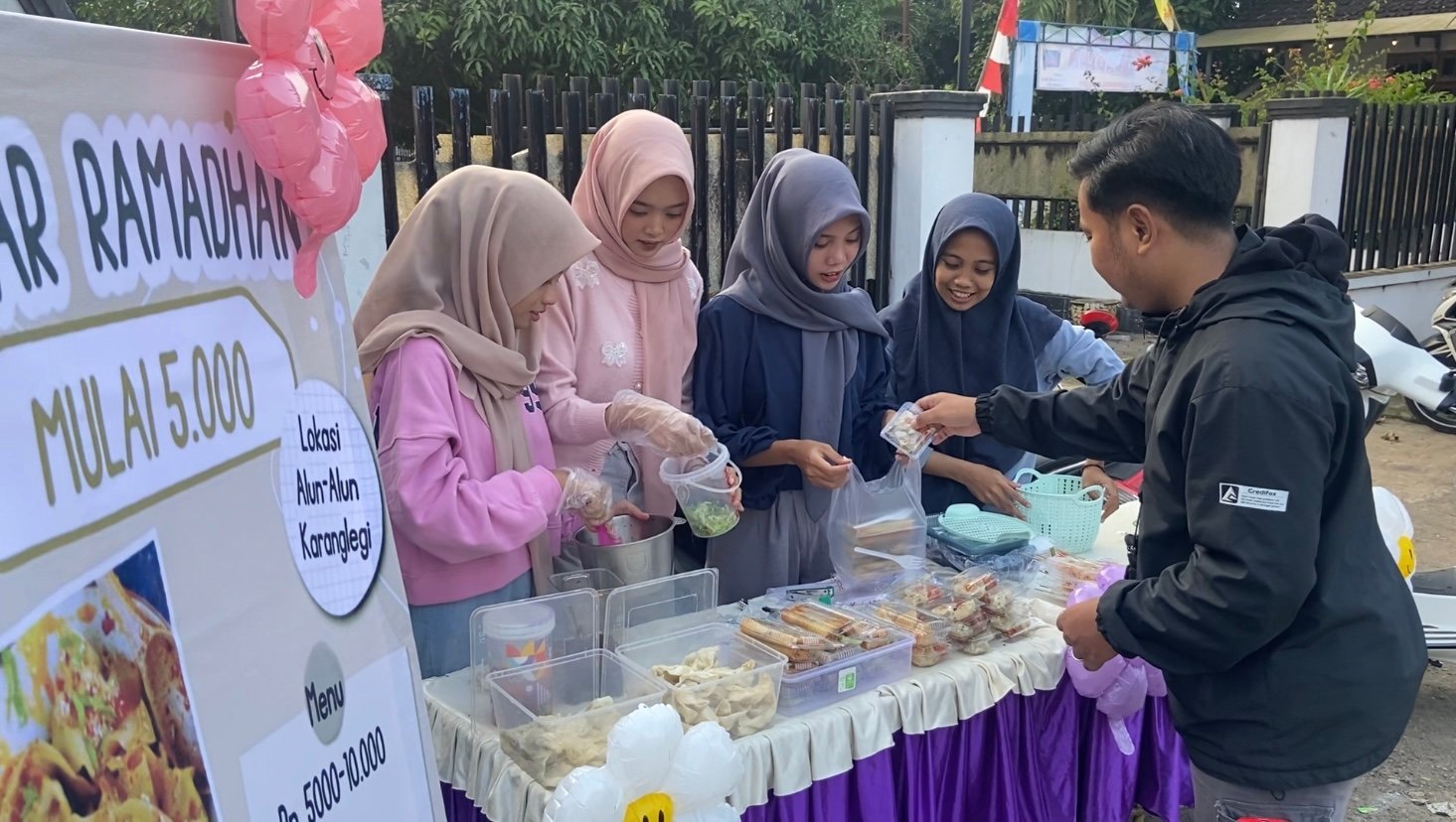 Pati – Dua siswi asal Desa Karanglegi, Kecamatan Trangkil, Kabupaten Pati, memanfaatkan libur sekolah di pekan pertama Ramadan 2025 dengan berjualan di Kampung Ramadhan. Aulia Putri (18) dan Diandra Anggia (17) menjual aneka kudapan seperti wonton, dimsum, lumpia, sosis, dan minuman jus. Kegiatan ini menjadi pilihan positif mereka untuk mengisi waktu luang selama liburan sekolah.