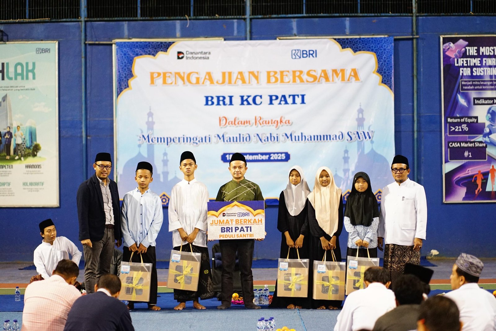 Pada kesempatan ini, BRI BO Pati memberikan 60 paket bingkisan kepada santri sebagai bentuk kepedulian sosial dan wujud nyata dalam meneladani semangat berbagi yang diajarkan Rasulullah SAW.